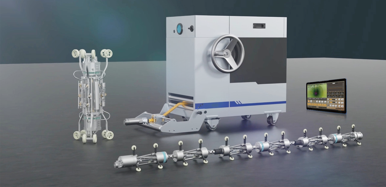 The Phoenix-80S is a next-generation portable UV-curing pipeline repair system engineered for precision, efficiency, and flexibility. Designed with an integrated, compact host control unit, it can be easily transported and deployed directly at the wellhead. Its dual-light chain configuration and variable-speed control deliver consistent curing performance across pipeline diameters from DN150 to DN1200, ensuring adaptability for a wide range of maintenance scenarios. Equipped with dual 2.1-megapixel front and rear cameras, it enables real-time high-definition monitoring and accurate documentation of repair progress. The system’s digital integrated drive technology guarantees stable operation, even under minor voltage fluctuations, and ensures the entire workflow is traceable and easily managed. With a compact design (1090×495×925 mm, 160 kg) and built-in wheel brakes, the Phoenix-80S offers superior mobility for confined urban and industrial environments. This system represents a new standard in portable pipeline UV-curing repair technology.