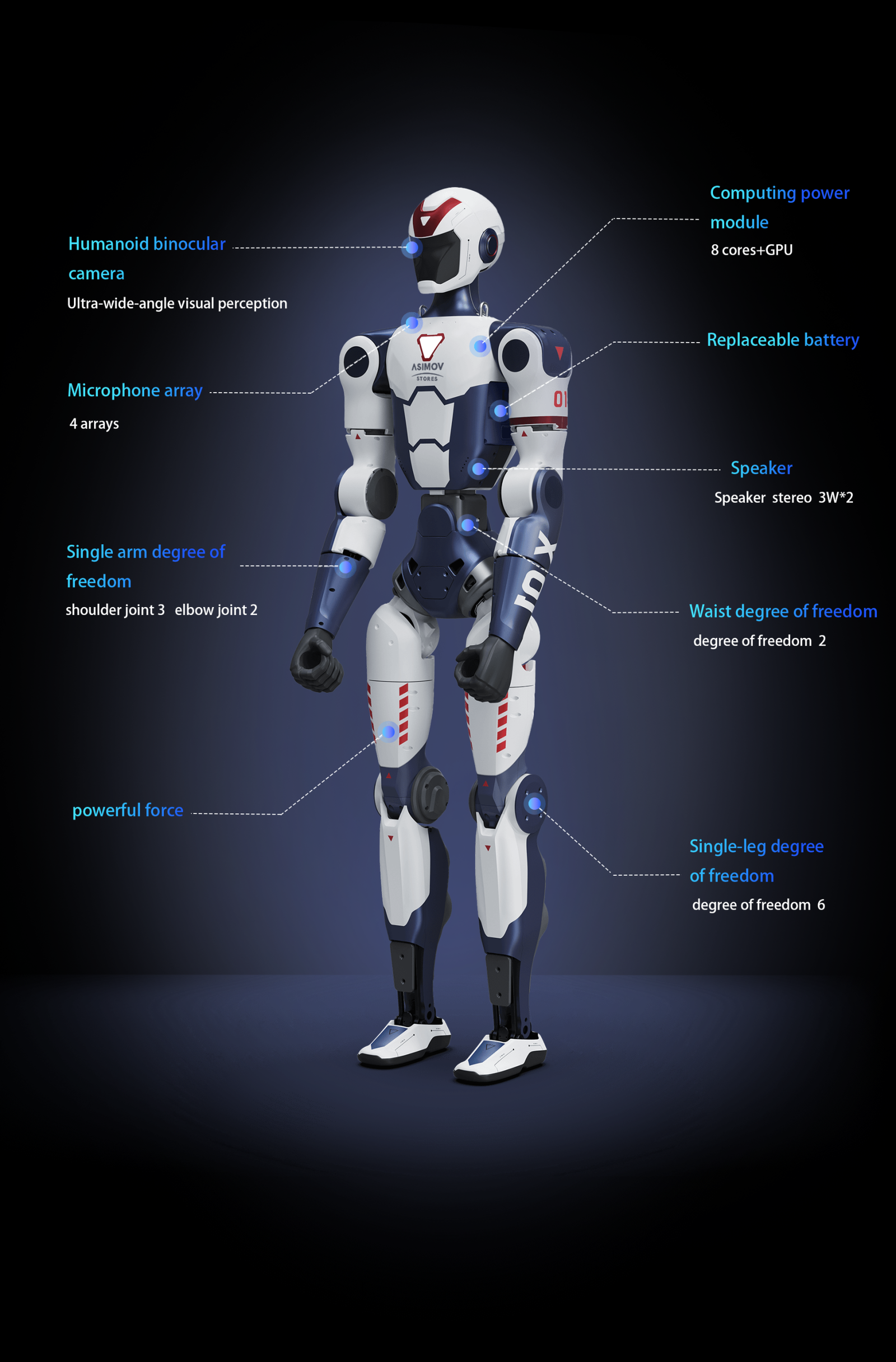 | Extra Large Joint Movement Space | Waist Y±150° R±30°, Knee -10°~148°, Hip Y±157° P-168°~146°, R-60°~100° | Same |